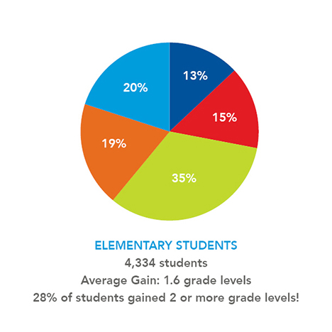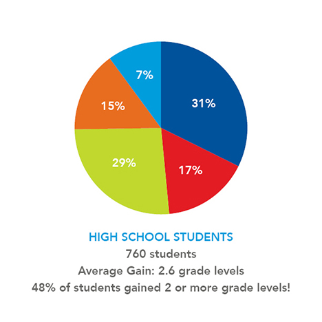 This study includes Dyslexic students who used CEI®’s Essential Learning Systems™ program for one school year. The graphs reflect the number of CEI students and their gains in Reading Comprehension at the end of that year.
